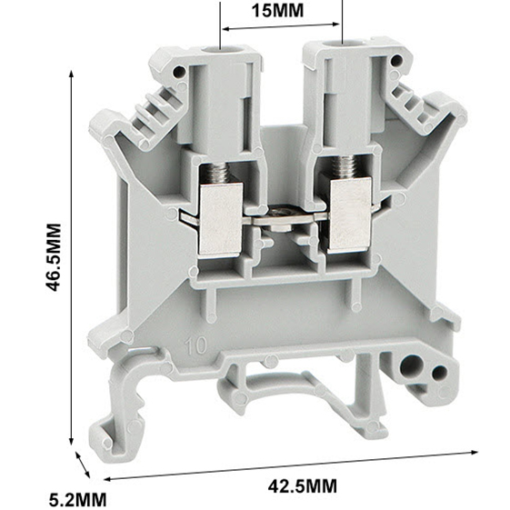 UK-3N Terminal Block สำหรับสายไฟขนาด 0.2 - 2.5 sq.mm. กระแสสูงสุด 32A โวลเตจสูงสุด 800V สำหรับติดตั้งบนรางปีกนก(DIN Rail) มาตรฐาน IEC947-7-1 วัสดุพลาสติก PA66 พร้อมตัวนำโลหะชุบนิเกิ้ล มีคุณสมบัติไม่ติดไฟไม่ลามไฟ ทนต่อการสึกหรอและรอยขีดข่วนได้ดี แข็งแรงทนทานและสะดวกรวดเร็วในการติดตั้ง